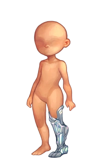 Cairn's Mechanical Leg is a mechanical leg replacement designed to mimic the utility and movement of an organic limb worn on the avatar's right leg. The Common variant is bronze, the Uncommon variant is copper, the Rare variant is light pink, and the Alchemy variant is silver.