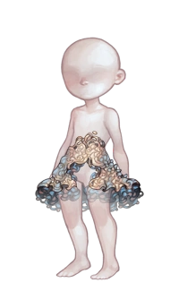 Celestial Basilisk Tasset resembles a thigh-length skirt with an open front. It has large, pale gold scales which look like fabric overlaid over puffy black lace.