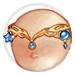 A simple brushed gold band with a small blue gem at the center. The Diadem variant is more ornate, and the Starry Tiara variant has additional blue gems at the avatar's temples. The Winged Halo variant sits atop the avatar's hair and has a white angel wing at the crown of the avatar's head.