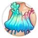 Clione's Camisole is a delicate camisole with a jelly-like consistency that is cropped at the avatar's waist. The Common variant is light teal, the Uncommon variant is lavender, the Rare variant is scarlet, and the Alchemy variant is gold.