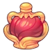 Crown Chalice is a scarlet sphere with swirling grooves encased in an ornamental gold filigree bottle with open sides.