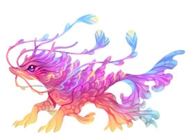 The Drimp resembles a bright pink sea shrimp with small beady eyes that has orange and blue accent hues on its fins and tail.