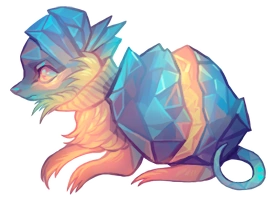 A vibrant armadillo-like creature. Its shell resembles a cracked geode, allowing for easy camouflage in crystal caverns.”