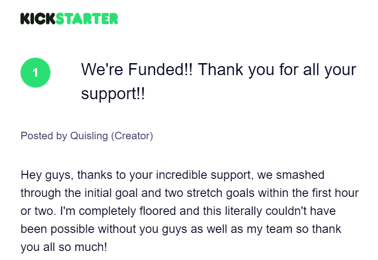 "We're Funded" Update