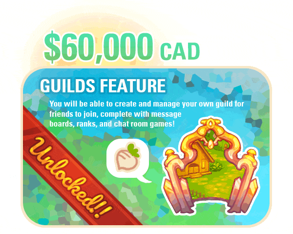 The Guilds Feature stretch goal was unlocked after the Kickstarter raised $60,000 (CAD). According to the Kickstarter, "this feature will bring players together in the form of player-created guild communities. We are hoping to have them function similarly to MMO guilds, where you can join a group and unlock new embellishments for the guild with player activity. We also plan to have guild-only chatrooms/forums complete with customizable guild ranks and moderation powers." This goal was unlocked on September 2, 2017.