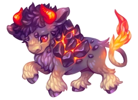 A small glowing cow who leaves charred ground wherever it walks, its tail flame never extinguishes.”