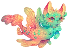 The Mercat resembles a fish with the upper body of a cat and the lower body of a fish. Their fur and scales fade from turquoise to peach.