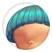An airy and rounded teal bowl cut. Not a single hair is out of place.