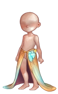 Not A Wizard Robe Drapings is a floor-length skirt draping tied around the world-hopper avatar's waist. The draping has small sparkles like stars and potion bottles fastened to the waistband. The Common variant is blue with golden potions, the Uncommon variant is red with silver potions, the Rare variant is deep purple with light pink potions, and the Alchemy variant is golden with glowing blue potions.
