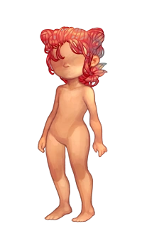 Peony Viscount Updo is a soft red hair that ends at the nape of the neck. Two high buns sit on either side of the avatar's head, and a few strands of loose hair form bangs that fall over the avatar's forehead.