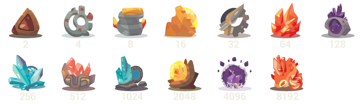 Silvie's Artifacts is a rendition of the mathematical sliding puzzle game 2048.[1] Your task is to find rare crystals in the mines. You do this by combining crystals and other materials of the same sort on a 4x4 grid.