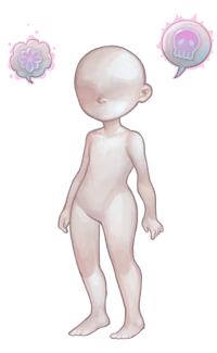 Reanimated Wolfchild Dialogue is two pastel pink speech bubbles above the avatar's head, one filled with a cartoon skull and the other filled with a flower.