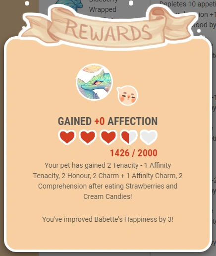 Like the four Dappervolk classes, pets have an affinity and a weakness when it comes to stats. Feeding your pet a food that matches their nature will possibly give them an additional point of that stat. Feeding them a food of a stat that is opposite of their nature may wield nothing.