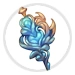 Stormbound Centurion Staff is a tall golden scepter held in the avatar's left hand. It has a swirled, ocean-blue glass bauble on the top.