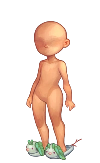 Turnipling Slippers resemble green slippers with a Turnipling head on the front and a little root tail on the back.