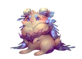The Winter Cottontail resembles a rabbit with white fur and a pair of cotton flowers in place of its ears. It is adorned with green needles and leaves across its back.