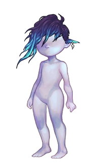 Xarion's Current Swept Hair is dark jagged hair streaming in the ocean current with a shark fin shaped ear adornment. It is similar to an undercut style, short on the sides and long on top. The Common variant is dark blue, the Uncommon variant is bright blue, the Rare variant is light teal, and the Alchemy variant is dark red.